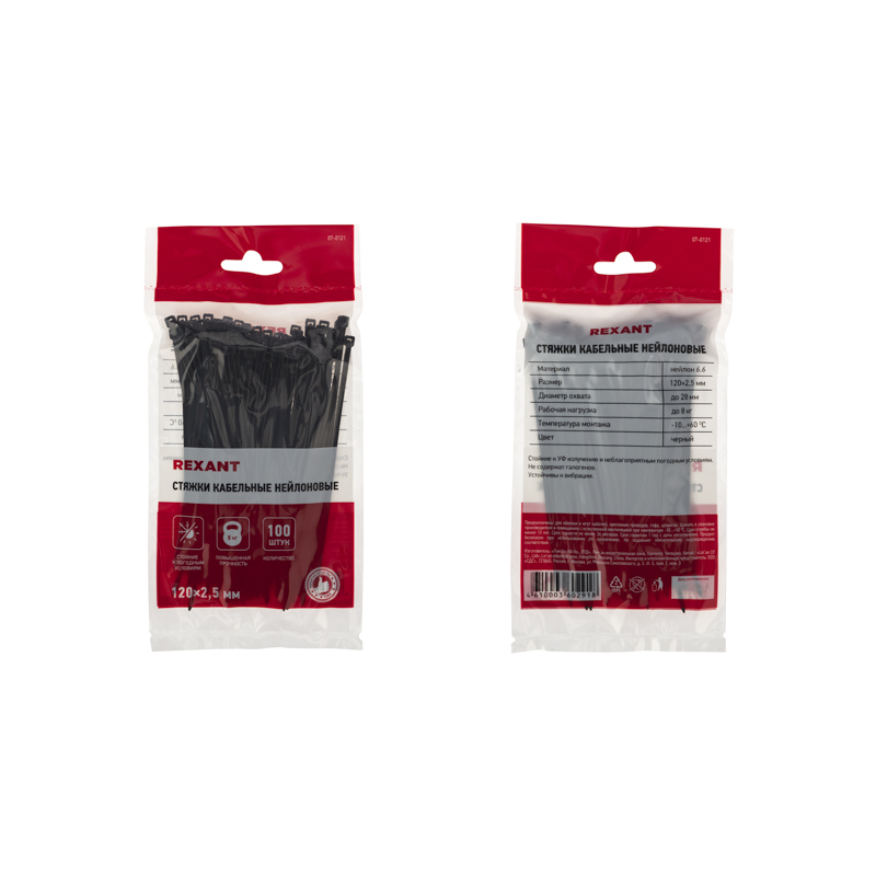 Нейлоновый хомут (кабельная стяжка) 120x2,5 мм – простое и экономичное изделие, которое используют для крепления или соединения в жгут проводов, кабелей и любых разновидностей труб. Прочность, эластичность и простота монтажа позволяют использовать их на предприятиях и в быту. Стяжки позволяют соединять детали конструкций, связывать вместе предметы, подвязывать растения и многое другое.