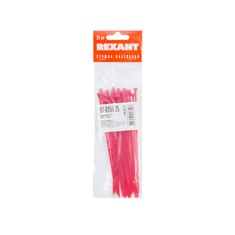В упаковке поставляются 25 красных стяжек размером 150x2,5 мм.
