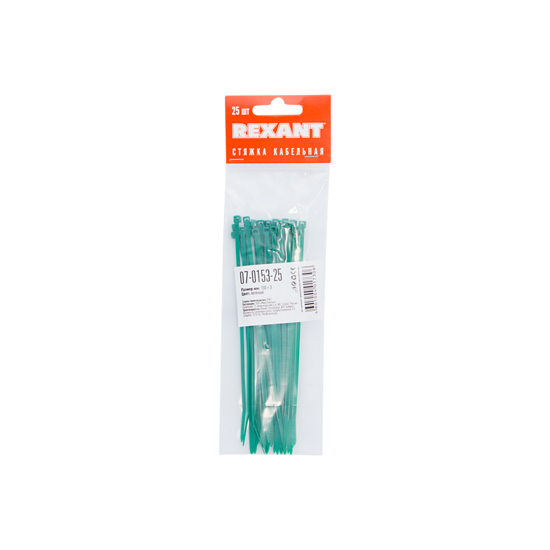 В упаковке поставляются 25 зеленых стяжек размером 150x2,5 мм.