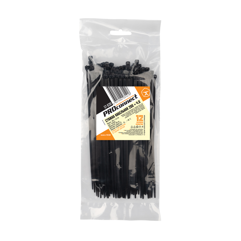 Стяжка кабельная нейлоновая 200x3,6мм, черная (100 шт/уп) PROconnect