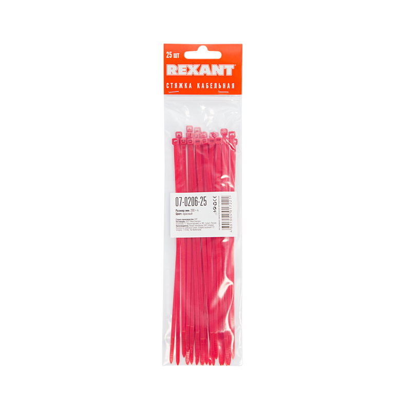 В упаковке поставляются 25 красных стяжек размером 200x3,6 мм.