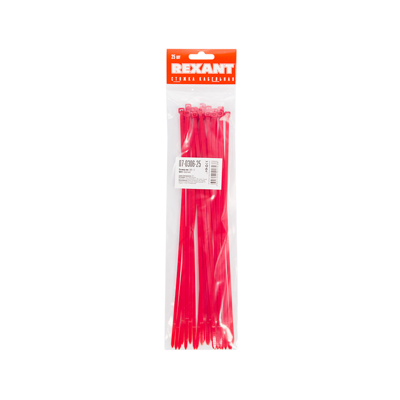 В упаковке поставляются 25 красных стяжек размером 300x4,8 мм.