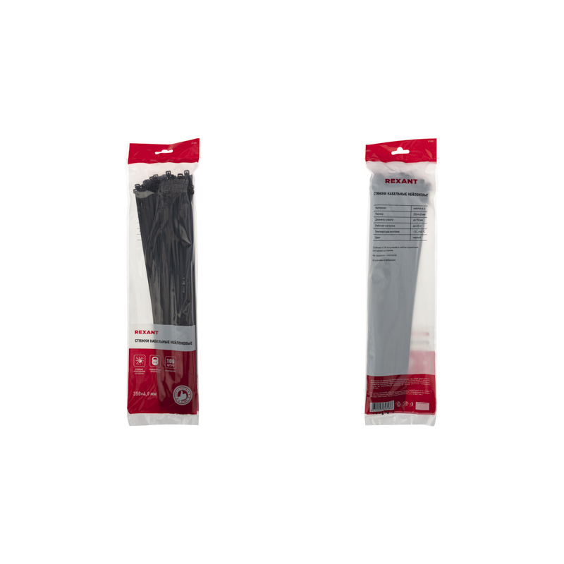 В упаковке поставляются 100 стяжек размером 350x4,8 мм.