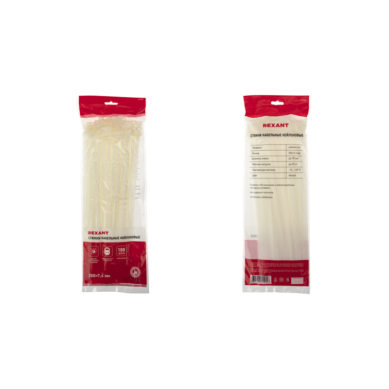 В упаковке поставляются 100 стяжек размером 350x7,6 мм.