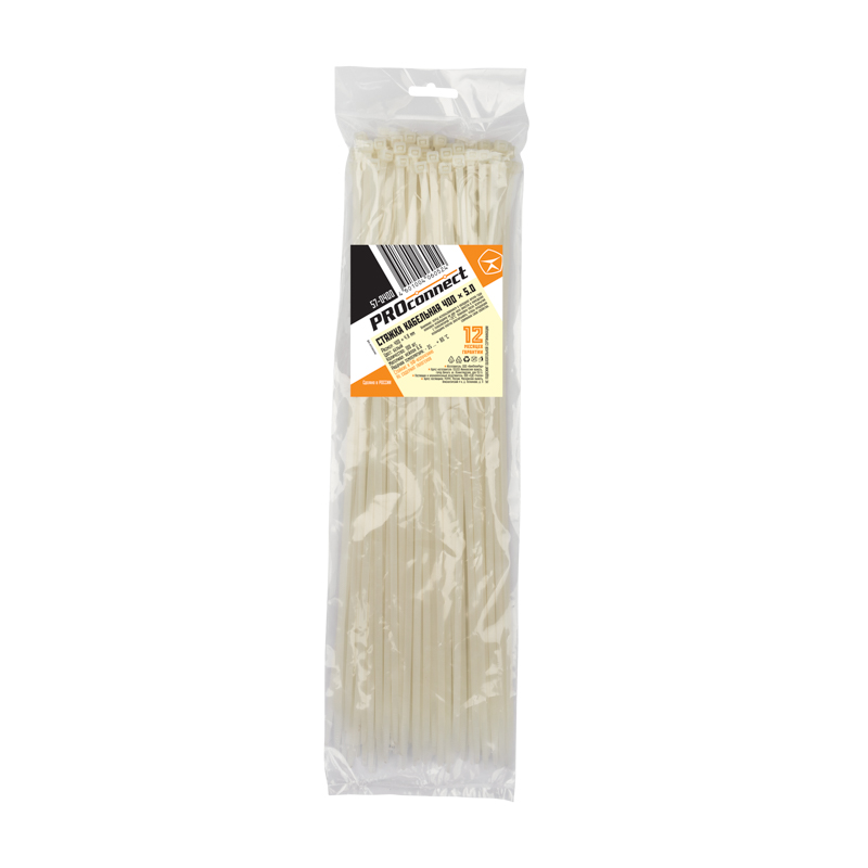 Стяжка кабельная нейлоновая 400x4,8мм, белая (100 шт/уп) PROconnect