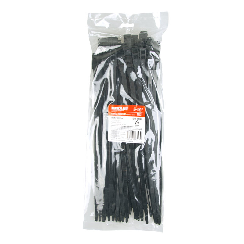 Усиленный хомут размером 350x9,0мм с двойным замком применяется для бандажирования и крепления кабелей и СИП. Изделие помогает экономить пространство при соединении и прокладке нескольких групп кабелей близко друг к другу или в одной трассе.