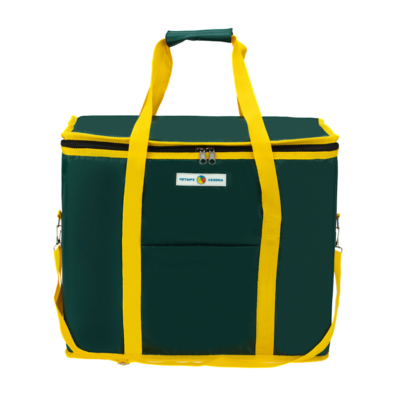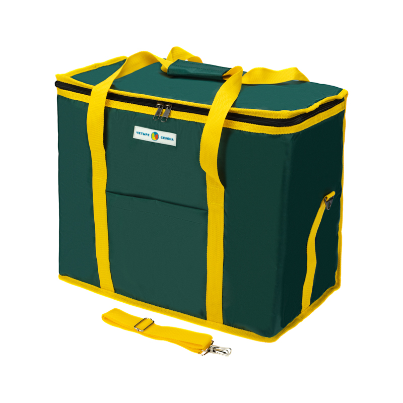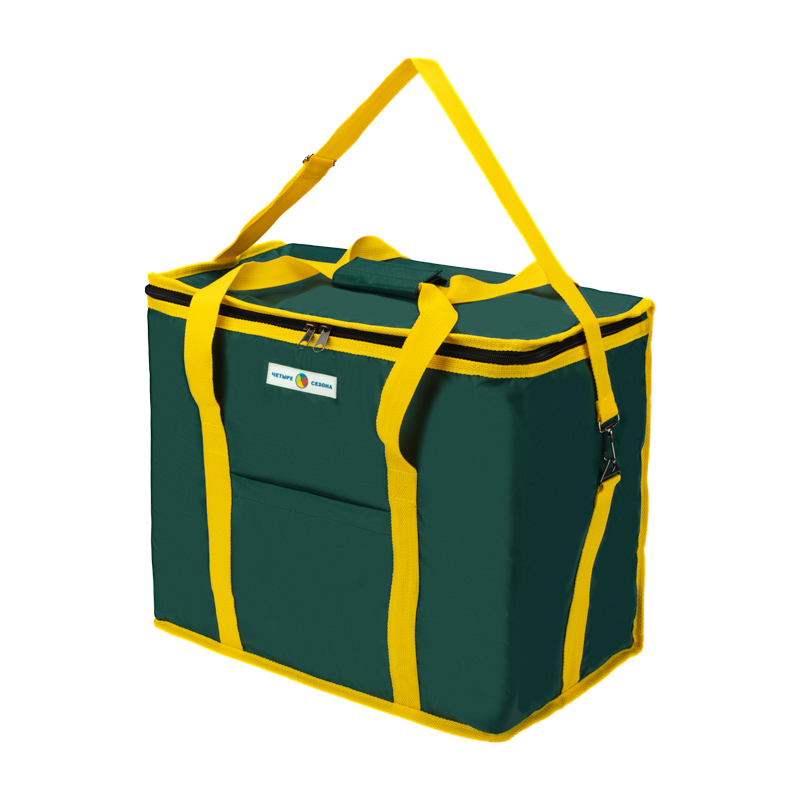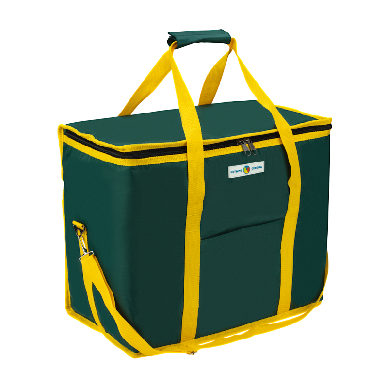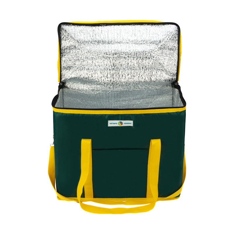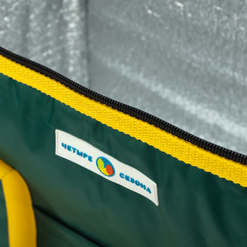 С внешней стороны сумка покрыта прочной и влагостойкой тканью оксфорд 420 с ПВХ, а с внутренней стороны – фольгированным материалом, обладающим высокими теплоизоляционными свойствами. Материал утеплителя - изолон.