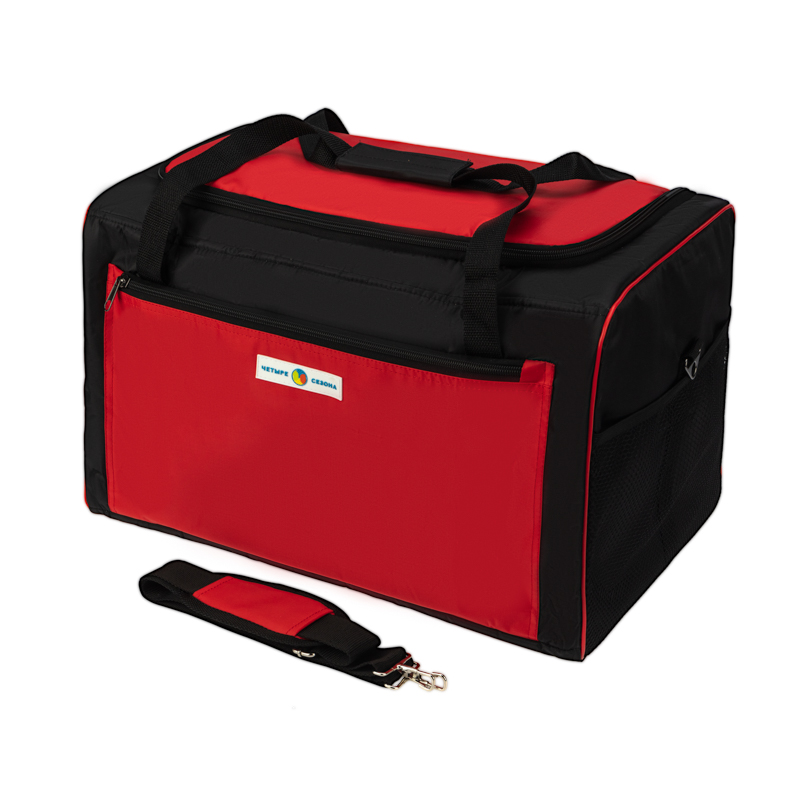 С внешней стороны сумка покрыта прочной и влагостойкой тканью оксфорд 420 с ПВХ, а с внутренней стороны – фольгированным материалом, обладающим высокими теплоизоляционными свойствами. Материал утеплителя - изолон.