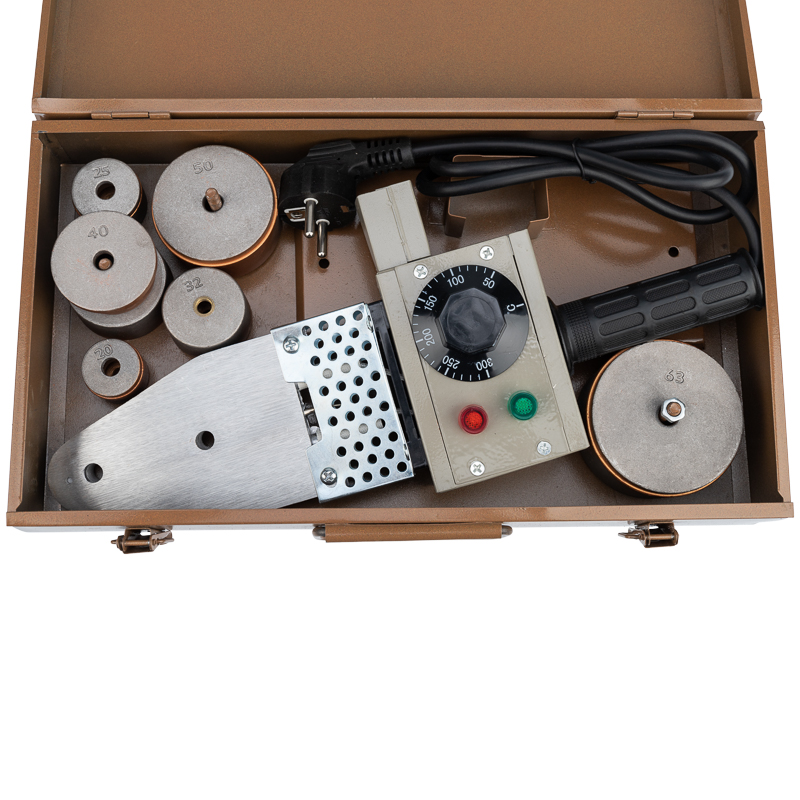 Сварочный аппарат поставляется в металлическом чемоданчике, что упрощает его транспортировку и хранение, так как не занимает много места.