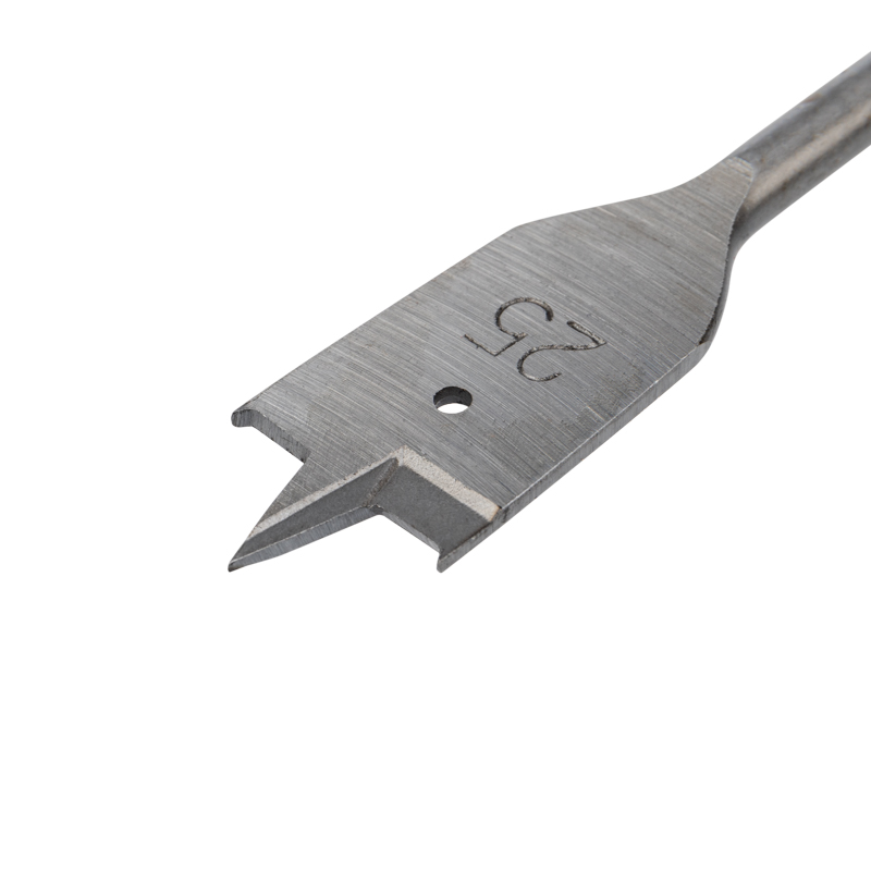 Сверло выполнено из закаленной инструментальной стали, которая повышает износостойкость и долговечность инструмента. Состоит из рабочей части и шестигранного хвостовика. В центре рабочей части находится выступ, благодаря которому можно зафиксировать инструмент во время засверливания. С двух сторон от центрального выступа размещены режущие лезвия. Благодаря подрезателям на режущих кромках рабочей части в отверстиях получаются ровные края. Хвостовая часть, выполненная в виде шестигранника, надежно фиксирует сверло в патроне инструмента.