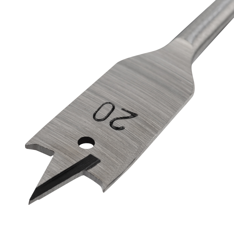 Сверло выполнено из закаленной инструментальной стали, которая повышает износостойкость и долговечность инструмента. Состоит из рабочей части и шестигранного хвостовика. В центре рабочей части находится выступ, благодаря которому можно зафиксировать инструмент во время засверливания. С двух сторон от центрального выступа размещены режущие лезвия. Благодаря подрезателям на режущих кромках рабочей части в отверстиях получаются ровные края. Хвостовая часть, выполненная в виде шестигранника, надежно фиксирует сверло в патроне инструмента.