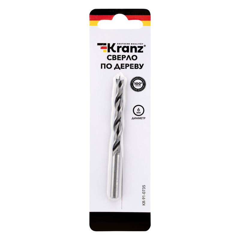 Сверло по дереву 6х90 мм, цилиндрический хвостовик Kranz