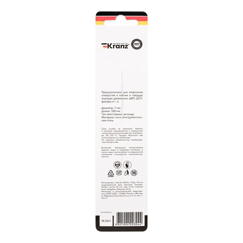 Сверло по дереву 7х105 мм, цилиндрический хвостовик Kranz
