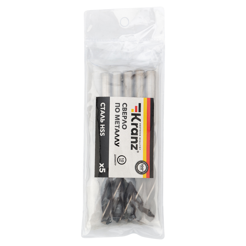 Сверло по металлу 10,0х133х87мм (HSS), DIN 338, 5 шт. в упаковке KRANZ