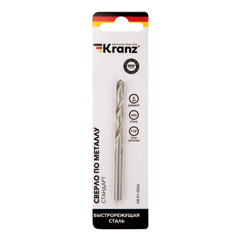 Сверло KRANZ изготовлено по стандарту DIN 338 и используется для сверления отверстий в таких материалах, как сталь, дерево и пластик.
