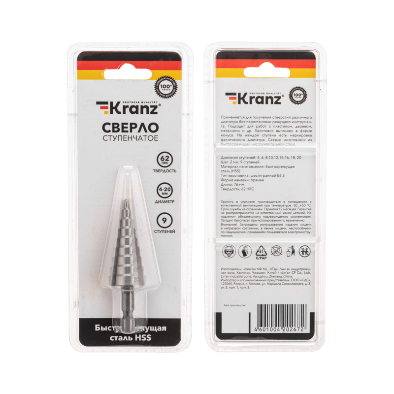 Ступенчатое сверло KRANZ применяется при выполнении монтажно-сборочных работ для сверления отверстий различных диаметров без перестановки режущего инструмента. Применяется в работе с такими материалами, как пластик, дерево, металл и др.