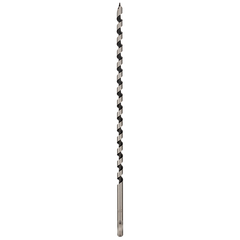 Сверло выполнено из закаленной инструментальной стали, что повышает износостойкость и долговечность инструмента. Центрирующее острие на конце рабочей части позволяет удобно засверливаться в материал и уменьшает осевую нагрузку, шнековая спираль Левиса обработана до зеркального блеска, из-за чего отверстия получаются гладкими, а стружка отводится более эффективно. Хвостовая часть, выполненная в виде шестигранника, надежно фиксирует сверло в патроне инструмента.