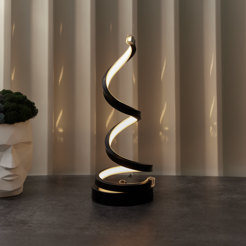 Декоративный настольный светильник Spiral, выполненный в современном дизайне, станет элегантным дополнением интерьера в стиле модерн или хай-тек. Изящная форма и теплое свечение создадут в комнате особенную и чарующую атмосферу.