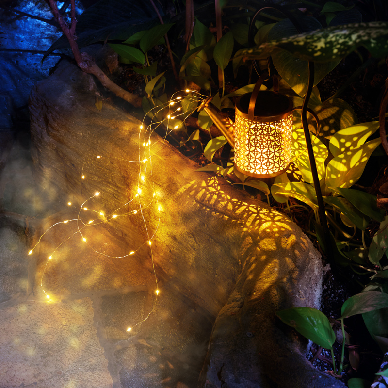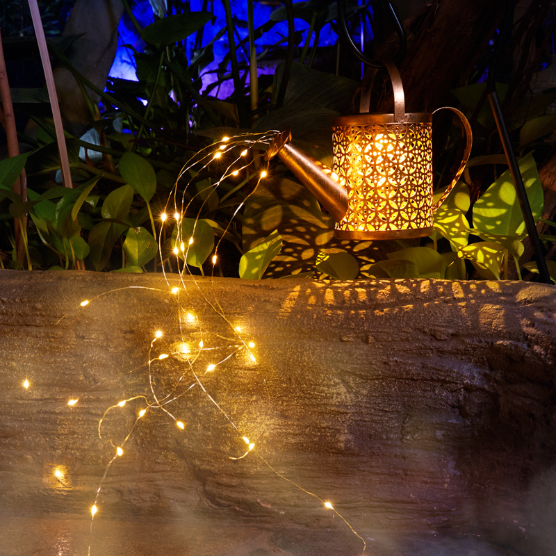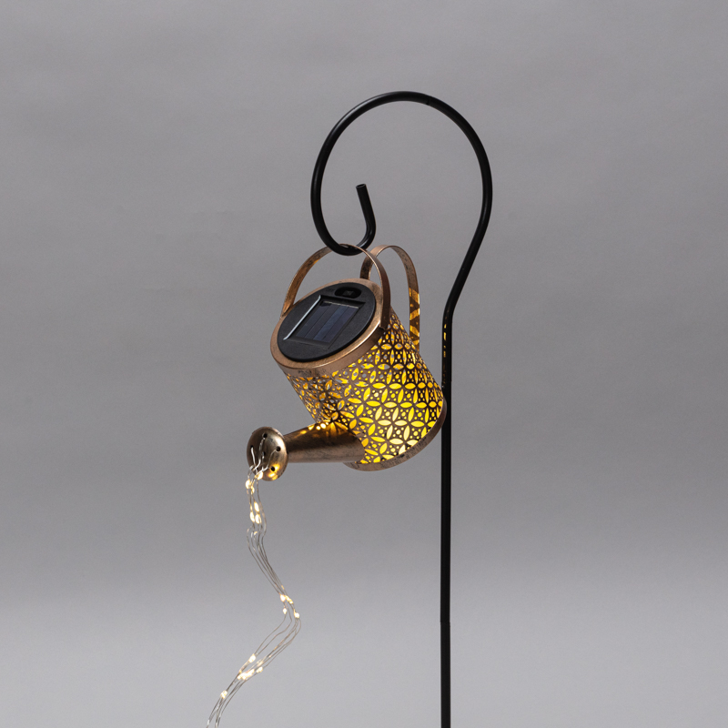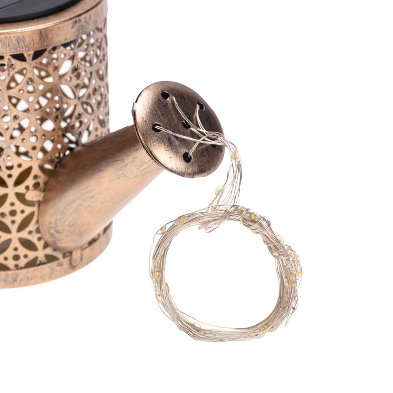 Светильник выполнен в форме Лейки, из носика которой струится гирлянда роса, создавая эффект светящихся падающих капель.