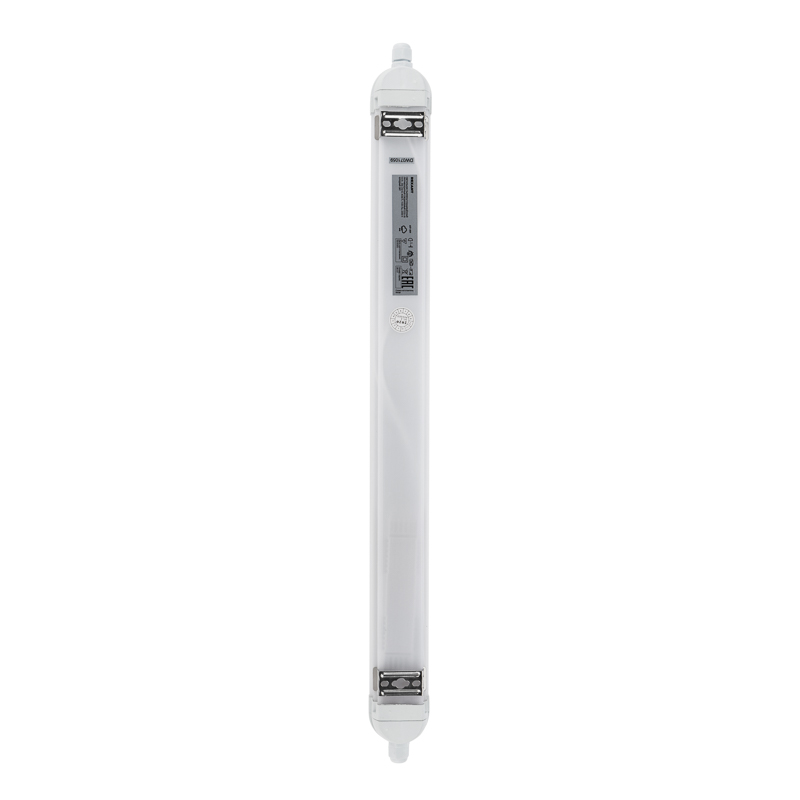 Энергоэффективный светильник оснащен встроенным источником питания и рассчитан на накладной монтаж с использованием скоб (в комплекте). Имеет высокую степень защиты от пыли и влаги, устойчив к механическим ударам, поэтому подходит для эксплуатации в сложных условиях.