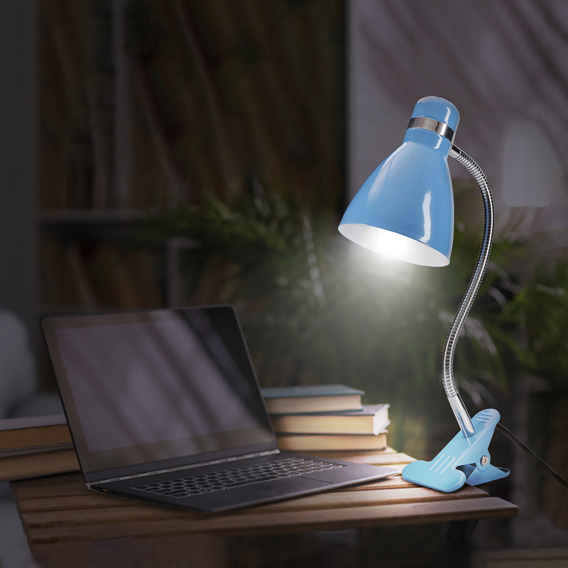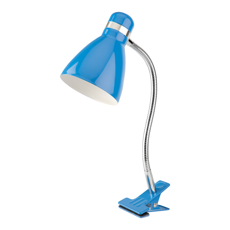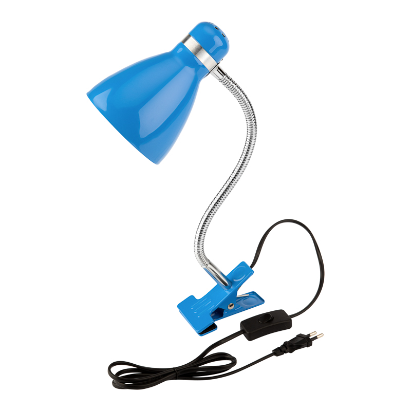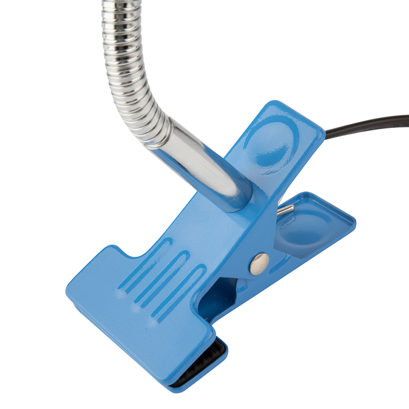 Зажим-прищепка позволяет фиксировать светильник как на стол, так и на спинку кровати и на прочие предметы мебели, а гибкая стойка позволяет менять направление света на 360°.