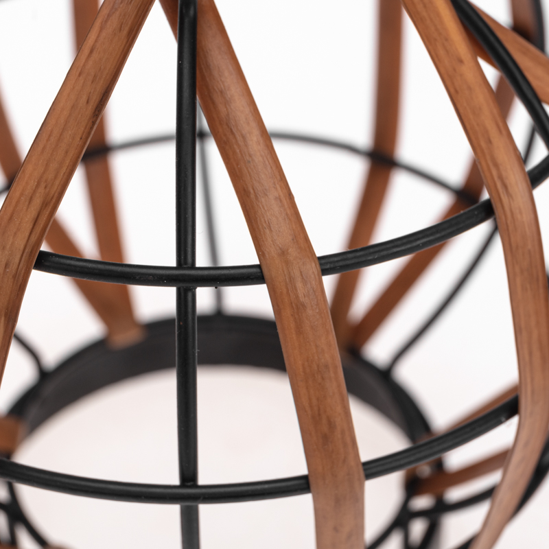 Открытая конструкция позволяет свету нежно проникать сквозь бамбуковые переплетения, создавая завораживающие узоры на окружающих поверхностях.