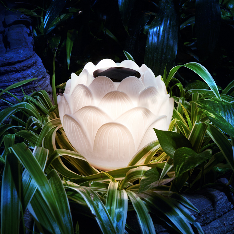 Дизайн изделия вдохновлен элегантностью и загадочностью восточных садов Пекина. Светильник выполнен в виде крупного цветка лотоса, символизирующего чистоту, красоту и духовное просветление. Его изысканные контуры и детали создают неповторимый образ, который привлекает внимание как днем, так и ночью.