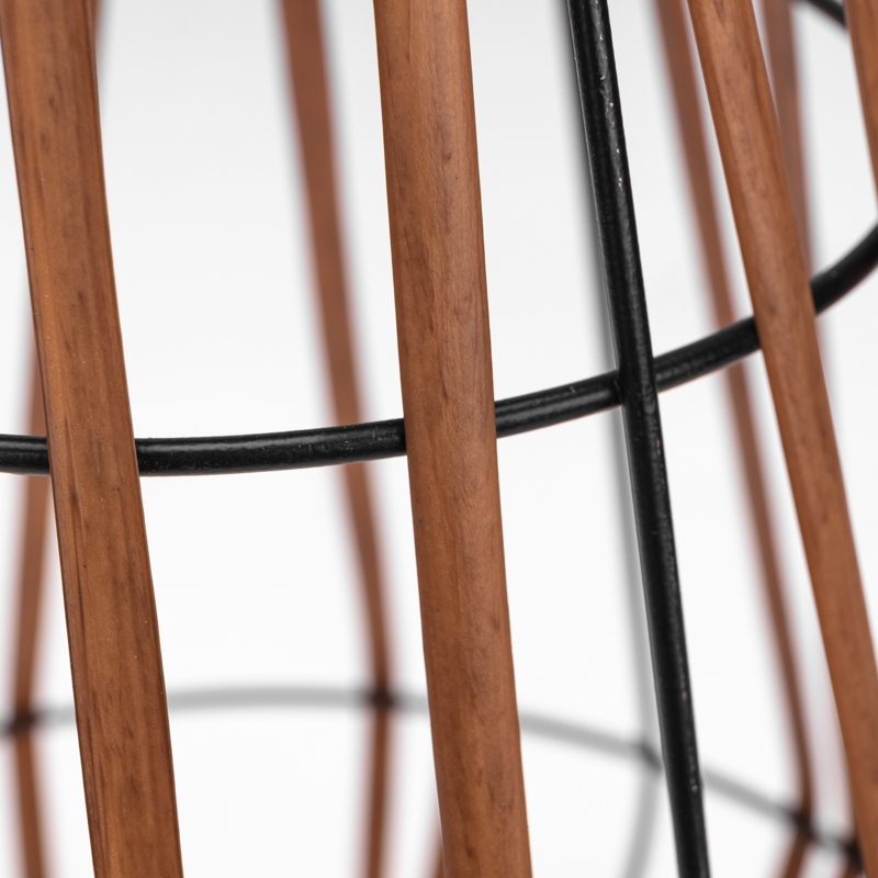 Открытая конструкция позволяет свету нежно проникать сквозь тростниковые переплетения, создавая завораживающие узоры на окружающих поверхностях.