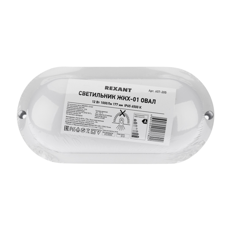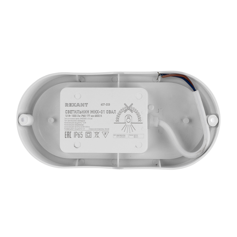 Светильник REXANT серии ЖКХ оснащен источником света типа SMD2835 с номинальной мощностью 12 Вт и световым потоком 1140 Лм.