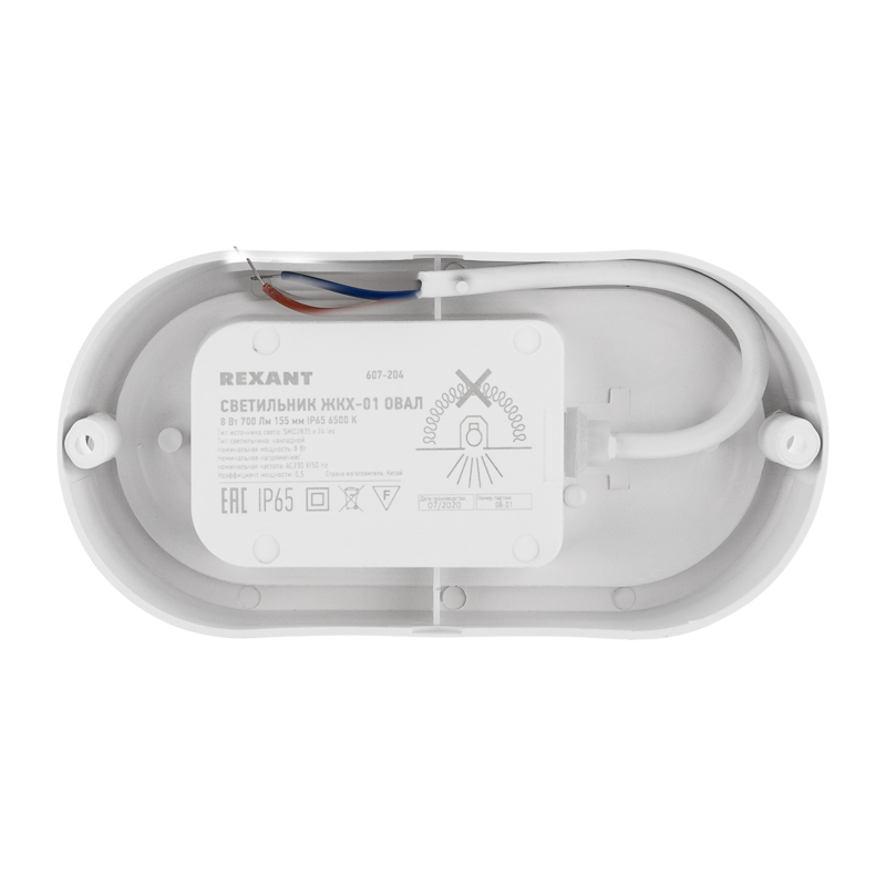Светильник REXANT серии ЖКХ оснащен источником света типа SMD2835 с номинальной мощностью 8 Вт и световым потоком 760 Лм.