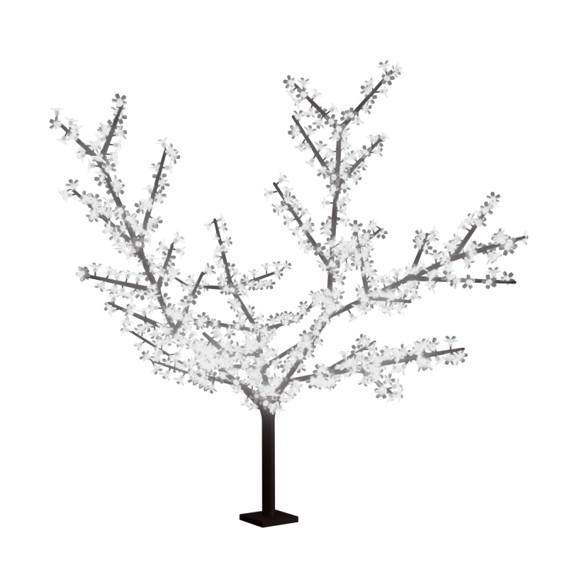 Светодиодное дерево «Сакура» высотой 3,6 метра — эффектный, необычный декор, который подходит для размещения как в помещениях, так и на улице. Защита IP65 исключает повреждение из-за попадания воды или пыли. В раскидистой кроне из черных веток 1728 диодов, находящихся внутри декоративных пластиковых цветов. Дерево имеет сборную конструкцию, которую легко смонтировать по инструкции. Металлическую подставку-основу можно закрепить на горизонтальной поверхности при помощи анкерных болтов. Диоды излучают постоянный белый свет.