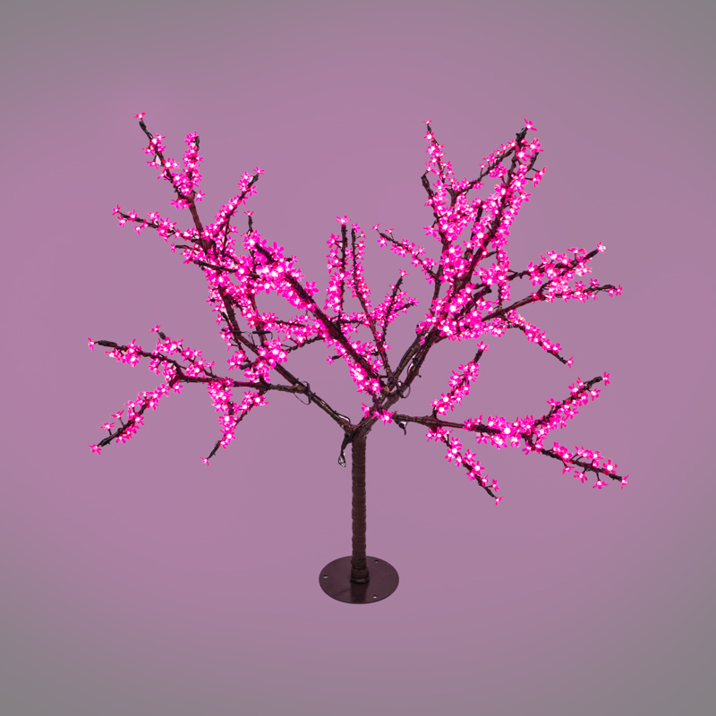 Раскидистая крона диаметром 1,8 метра состоит из изящных ветвей, с расположенными на них пластиковыми цветами японской вишни. 864 светодиода, которые излучают яркий розовый свет, эффектно выделяют лепестки.