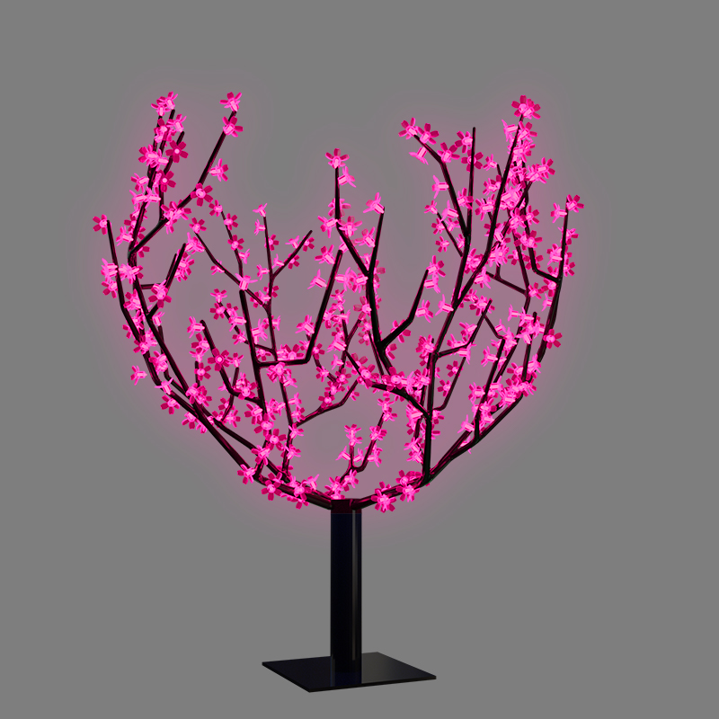 Ствол и крона выполнены из черного ПВХ и имеют сборную конструкцию. Композиция размещается на металлическом основании, в котором есть отверстия под анкерные болты. 1728 диодов розового свечения отличаются экономичностью, безопасностью и долговечностью.