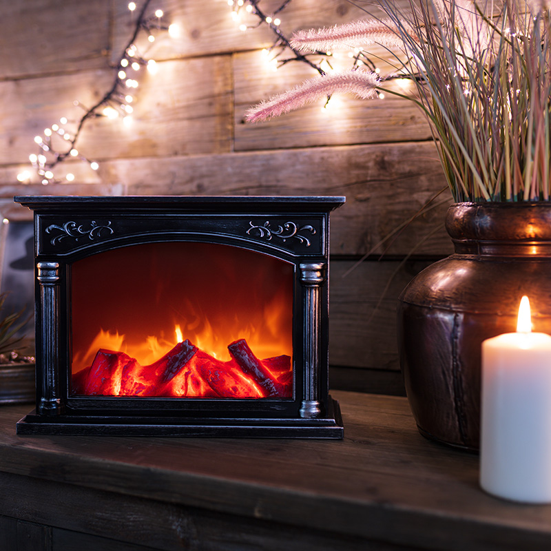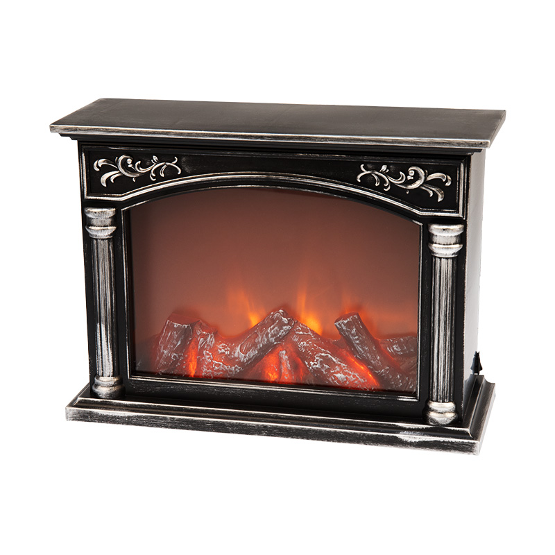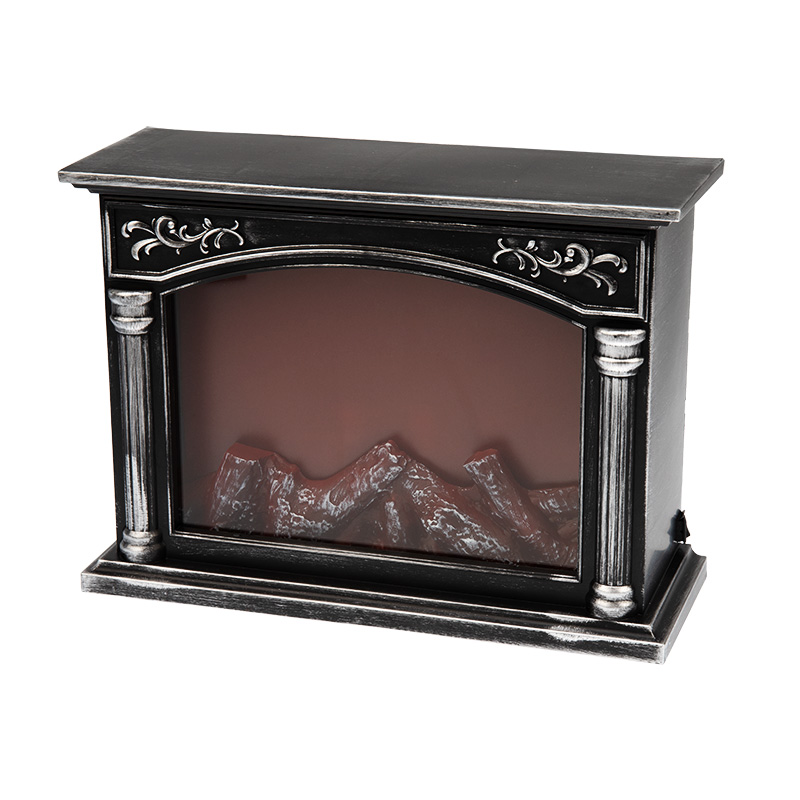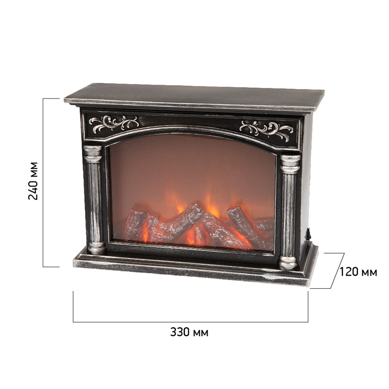 Светодиодный камин «Классика» создаст неповторимую атмосферу уюта и тепла. Имитация достигается благодаря трем светодиодам, подсвечивающим композицию в виде обугленных поленьев. Фасад с серебрением выполнен с эффектом состаренной поверхности. На корпусе расположен удобный перекидной выключатель. Камин питается от 3 батареек типа С или через адаптер питания и USB-кабель. Светодиоды не нагреваются и экономно расходуют заряд элементов питания. Динамическое свечение обеспечивает эффект живого, плавно двигающегося огня и натуральный вид раскаленных углей.