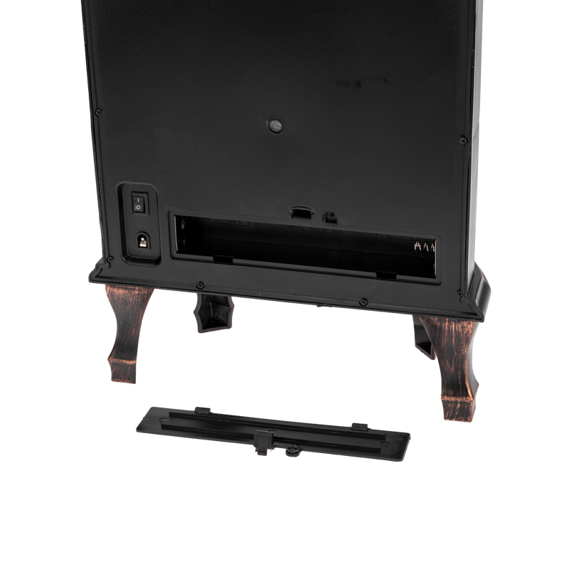 Камин работает от 3 батареек типа С или через адаптер питания и USB-кабель.