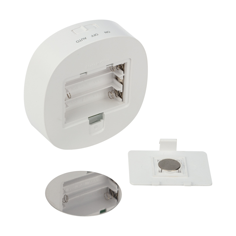 Светодиодный светильник предназначен для подсветки пространства в спальне или детской комнате. Такой светильник поможет ребенку быстро засыпать, чувствуя себя в полной безопасности. Теплый свет создает ощущение уюта и мягко разгоняет ночную темноту. Корпус светильника не имеет острых углов, опасных деталей и посторонних запахов. Светильник работает от 3 батареек типа ААА и имеет кнопку включения на корпусе. Светильник оснащен датчиком движения и может быть закреплен на стену.