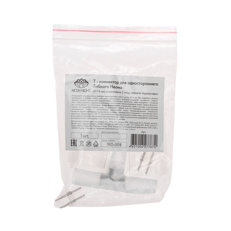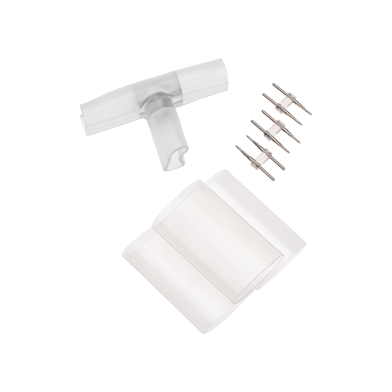 T - коннектор (муфта) используется для соединения одностороннего гибкого неона с постоянным свечением в месте примыкания одного отрезка к прямой линии двух других.