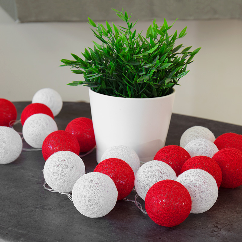 Тайские фонарики «Магия» — это волшебная светодиодная гирлянда, которая гармонично украсит интерьер и внесет нотку восточного уюта в ваш дом. 20 текстильных фонариков красного и белого цветов, выполненных из хлопковой нити, мягко подсвечиваются яркими диодами и создают поистине магическую атмосферу. Гирлянда питается от двух батареек АА, поэтому может использоваться в декоре любых, в том числе мобильных объектов, а также для оформления детских комнат. Степень защиты IP20 подразумевает размещение в интерьере в сухих отапливаемых помещениях.
