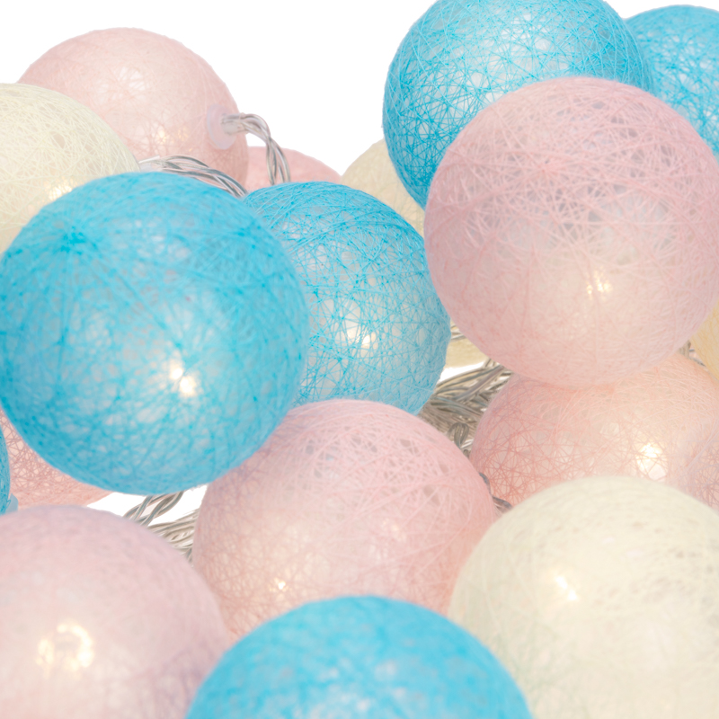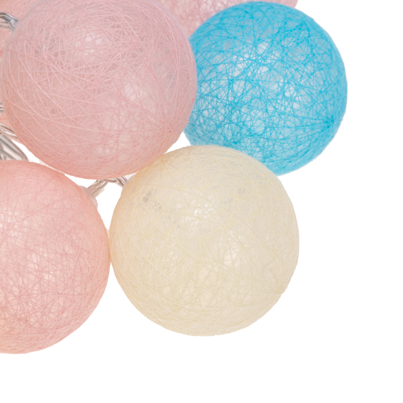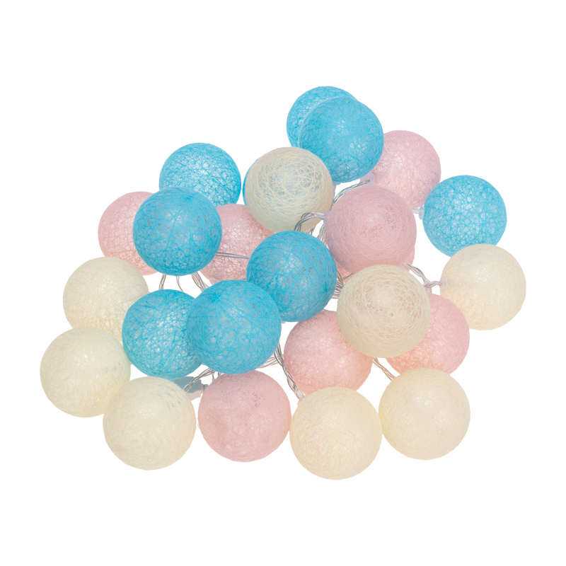 На проводе, помещенном в прозрачную изоляцию из ПВХ, располагаются 25 волшебных круглых фонариков из хлопковых нитей, способных превратить любое помещение в уникальное пространство.