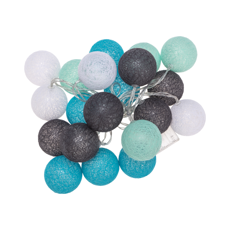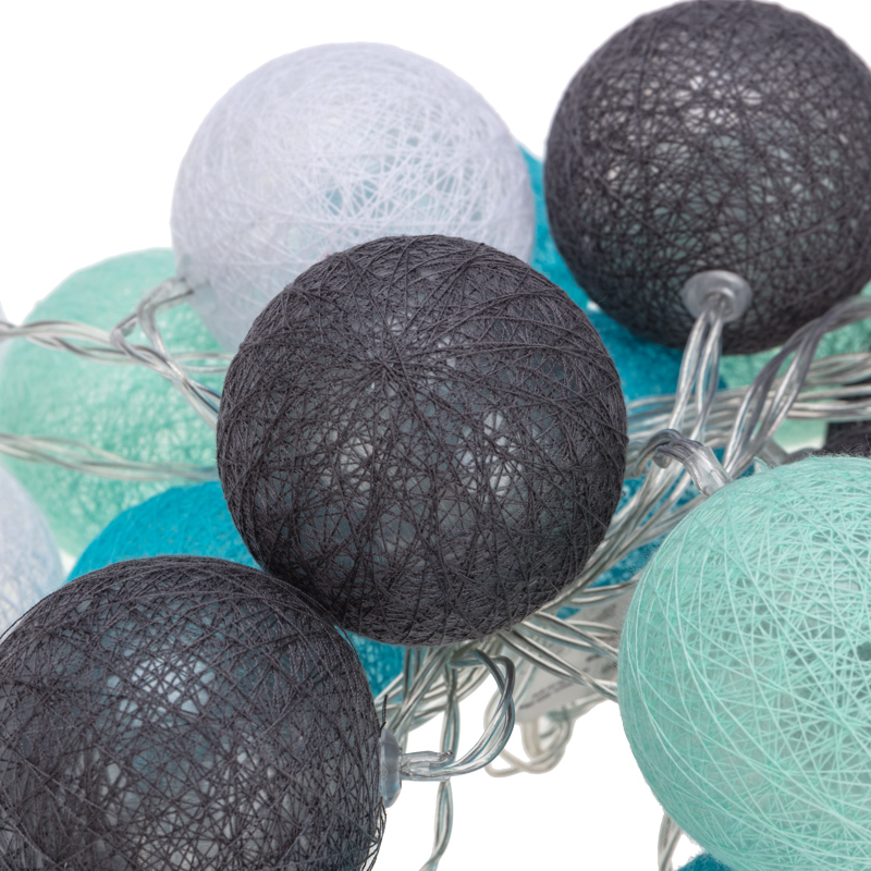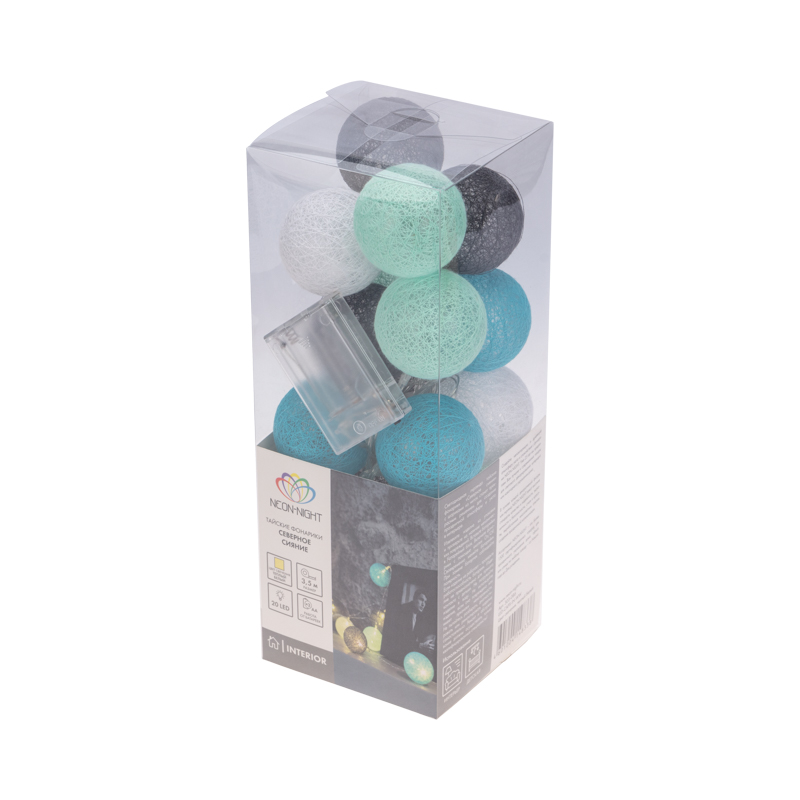 Тайские фонарики «Северное сияние» — светодиодная интерьерная гирлянда длиной 3,5 метра, которая имеет необычное, оригинальное оформление. 20 волшебных фонариков, выполненных из хлопковых нитей, располагаются на серебристом кабеле в прозрачной ПВХ-изоляции. Текстильные декоративные элементы, мягко подсвечиваемые изнутри белыми диодами, станут стильным украшением любой обстановки. Гирлянда получает питание от трех батареек АА, которые размещаются в специальном блоке на конце кабеля. Изделия с батарейками можно размещать даже в детских комнатах благодаря повышенной безопасности.