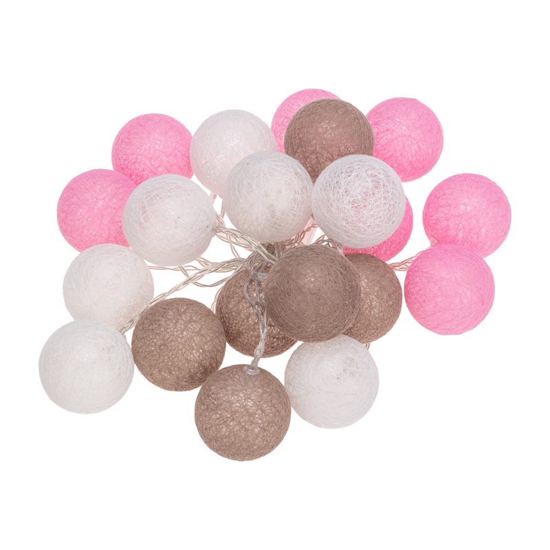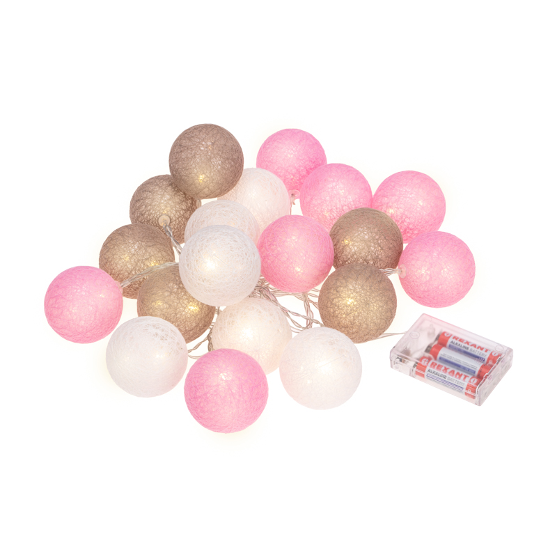 Тайские фонарики «Вельвет» — светодиодная гирлянда, которая станет оригинальным, эффектным украшением интерьера даже в выключенном состоянии благодаря необычному оформлению. На проводе, помещенном в прозрачную изоляцию из ПВХ, находятся 20 волшебных круглых фонариков из хлопковых нитей нити. Цветовое решение изделия гармонично сочетает спокойные оттенки: молочный, персиковый, коричневый. Декоративные элементы мягко подсвечиваются диодами, которые питаются от 3 батареек АА. Автономное питание светодиодных украшений — это безопасное решение для оформления детских комнат. Гирлянда IP20 предназначена для использования в помещениях.