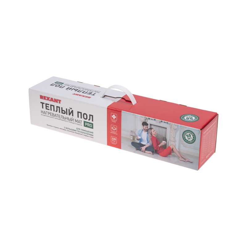 Нагревательный мат REXANT PRO мощностью 220 Вт - это эффективное и экономичное решение для обогрева помещения, так как устраняет необходимость в традиционных радиаторах. Кроме того, он предлагает более комфортное и равномерное распределение тепла, а также улучшенное качество воздуха, так как нет воздушных потоков, создаваемых радиаторами. Мощность поверхностного тепловыделения составляет 220 Вт/м².