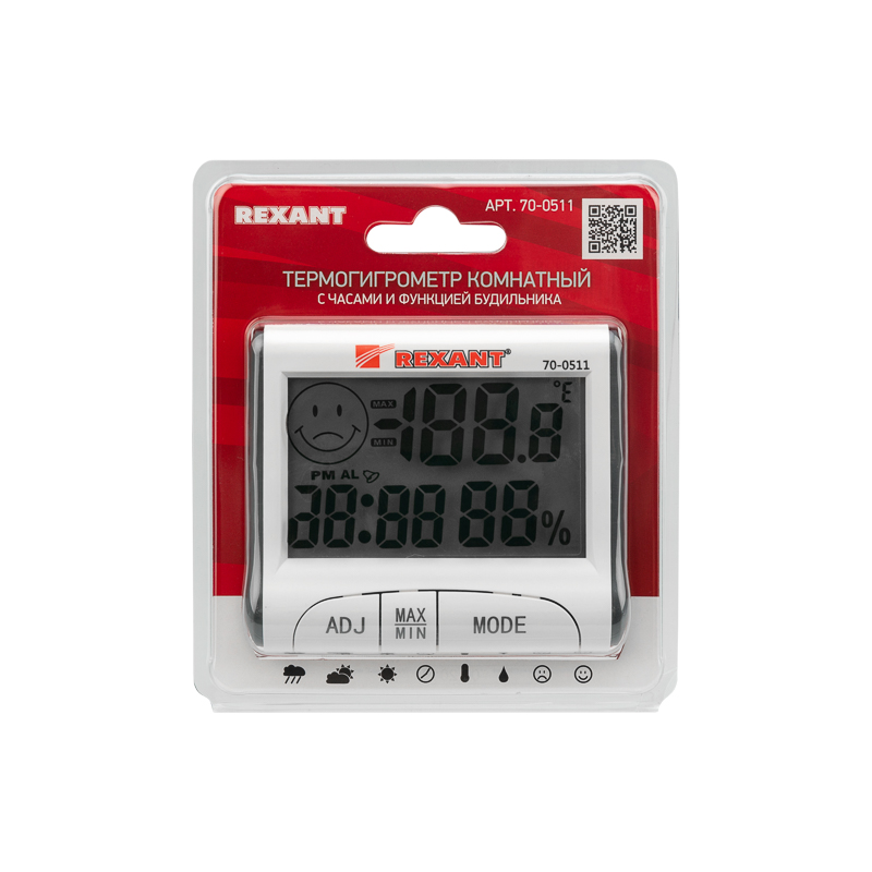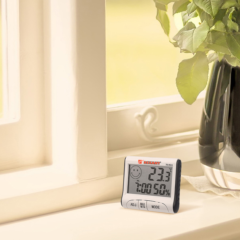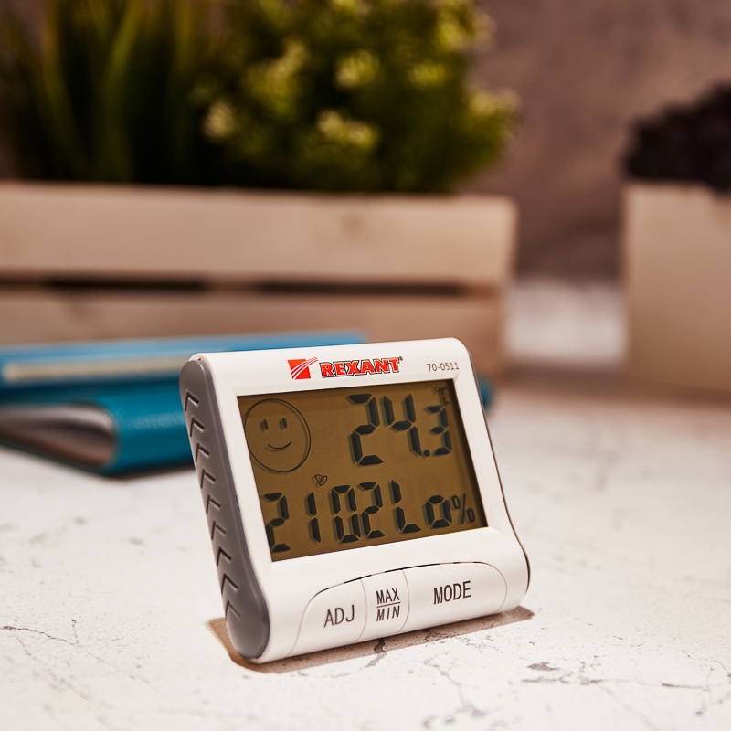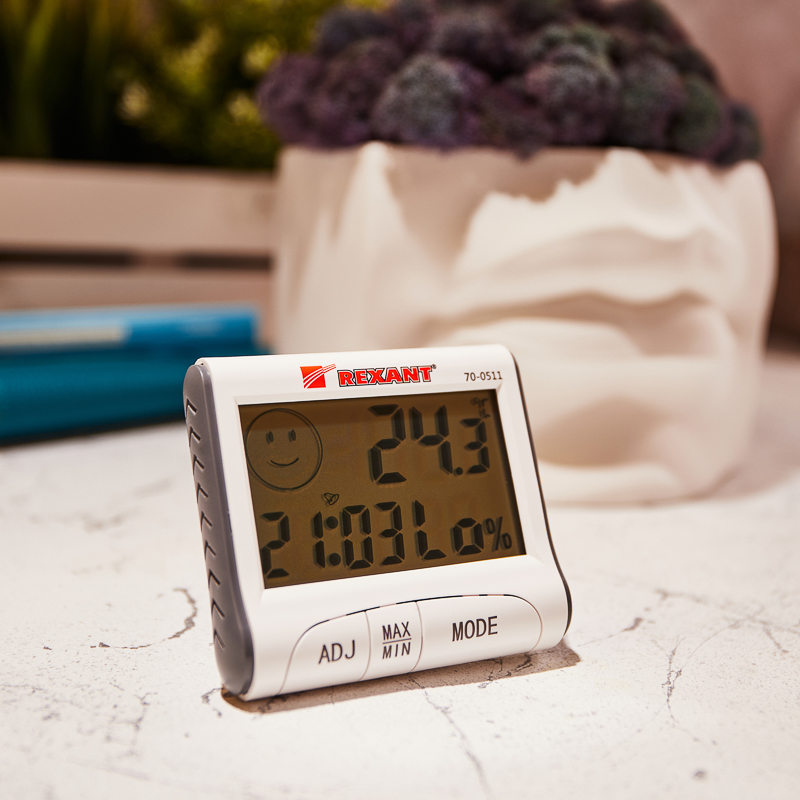 Комнатный термогигрометр REXANT предназначен для измерения показаний температуры и влажности в помещении.
