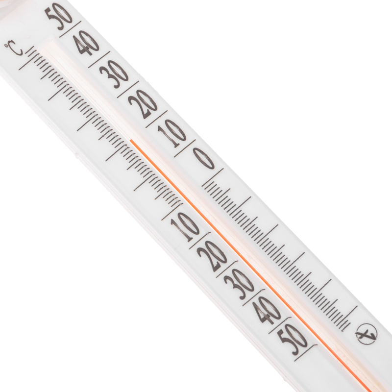 Термометр изготовлен из прочного и безопасного пластика, устойчивого к воздействию внешних факторов. Оснащен специальной планкой (2 мм), которая защищает капилляр от нагревания при попадании на термометр прямых солнечных лучей и обеспечивает максимально точные показания.