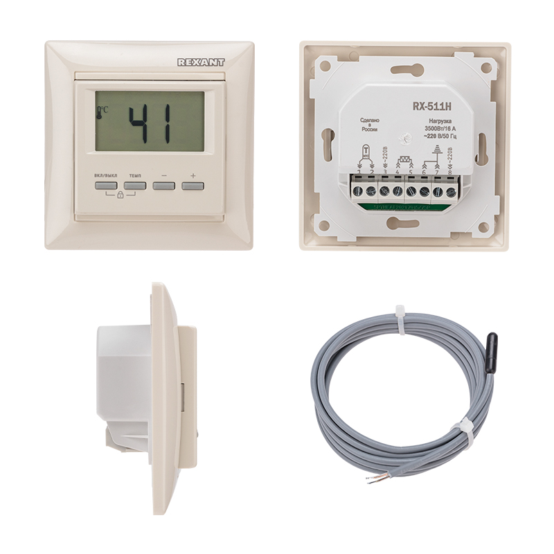 Цифровой терморегулятор RX-511H REXANT бежевого цвета разработан для точного контроля температуры пола с максимальной нагрузкой 3500Вт/16А. Он отличается высоким качеством и надежностью, а также выполнен в строгом и минималистичном дизайне. Обеспечивает регулировку температуры в диапазоне от +5°C до +40°C