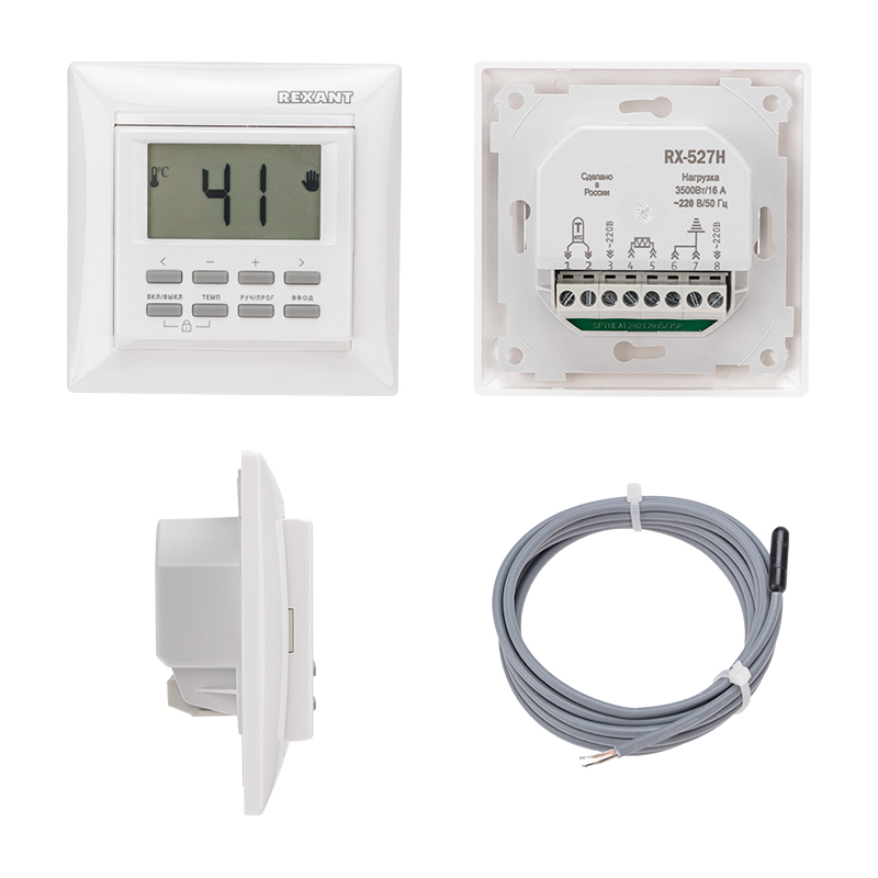Цифровой терморегулятор REXANT белого цвета предназначен для совместного использования с системами индивидуального электрического отопления: пленочными и кабельными теплыми полами, нагревательными матами, инфракрасными нагревателями и конвекторами без регулятора.