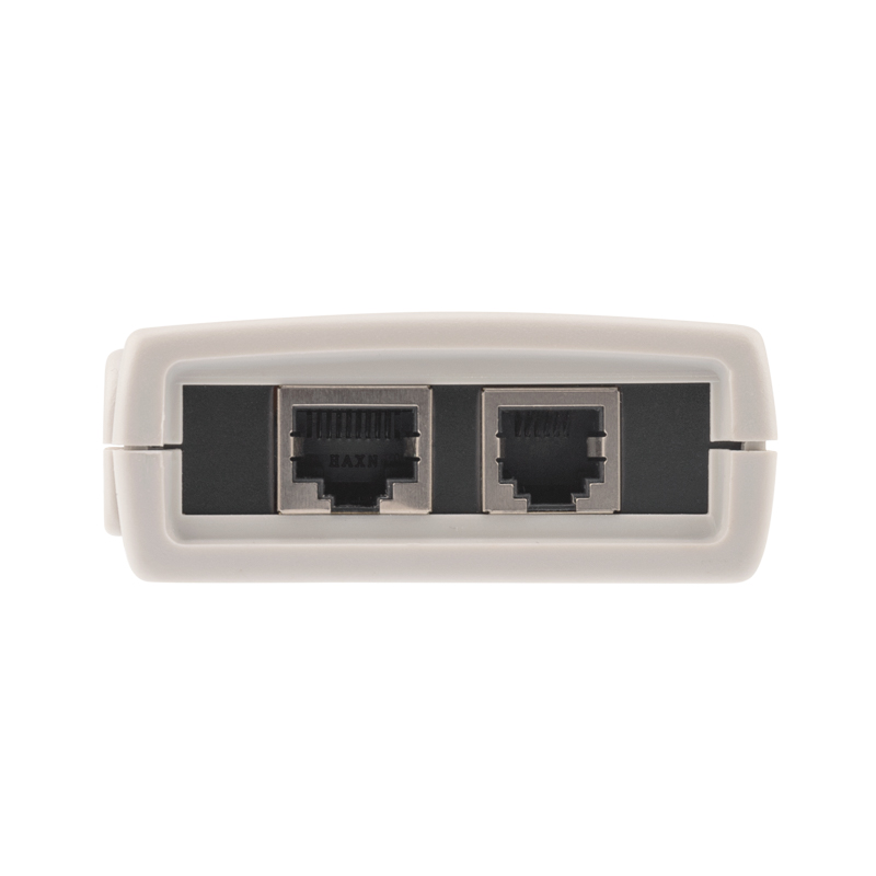 Тестер состоит из двух функциональных блоков — передатчика и приемника, которые подключаются к концам кабельной линии через разъемы RJ-45+RJ-11/RJ-12. Светодиодная индикация есть на основном блоке прибора и на удаленном модуле.