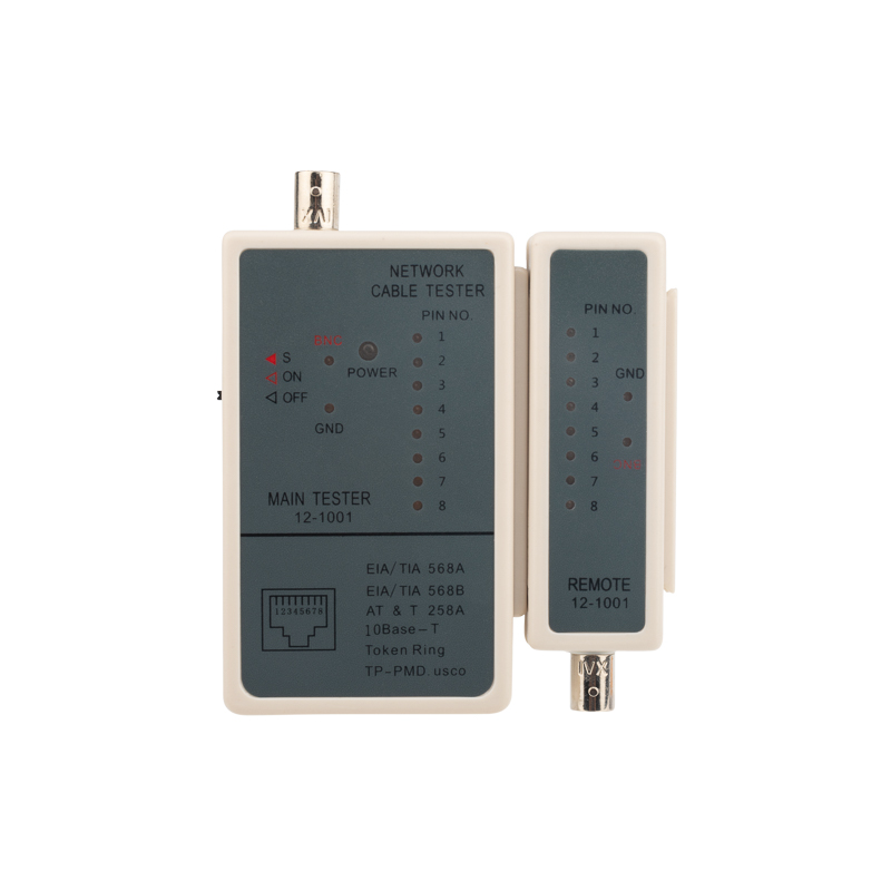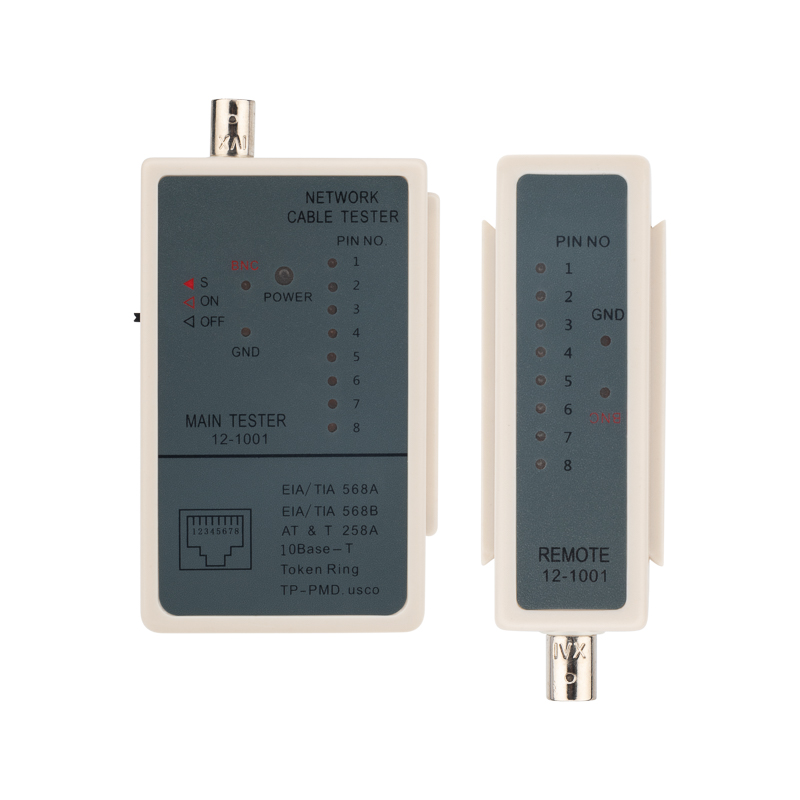 Тестер кабеля RJ-45/RJ-12/ RJ-11/BNC 5248 REXANT предназначен для тестирования коаксиальных кабелей и кабелей на основе витых пар. Тестер состоит из двух функциональных блоков — передатчика и приемника, которые подключаются к концам кабельной линии через разъемы RJ-45/RJ-12/ RJ-11/BNC .