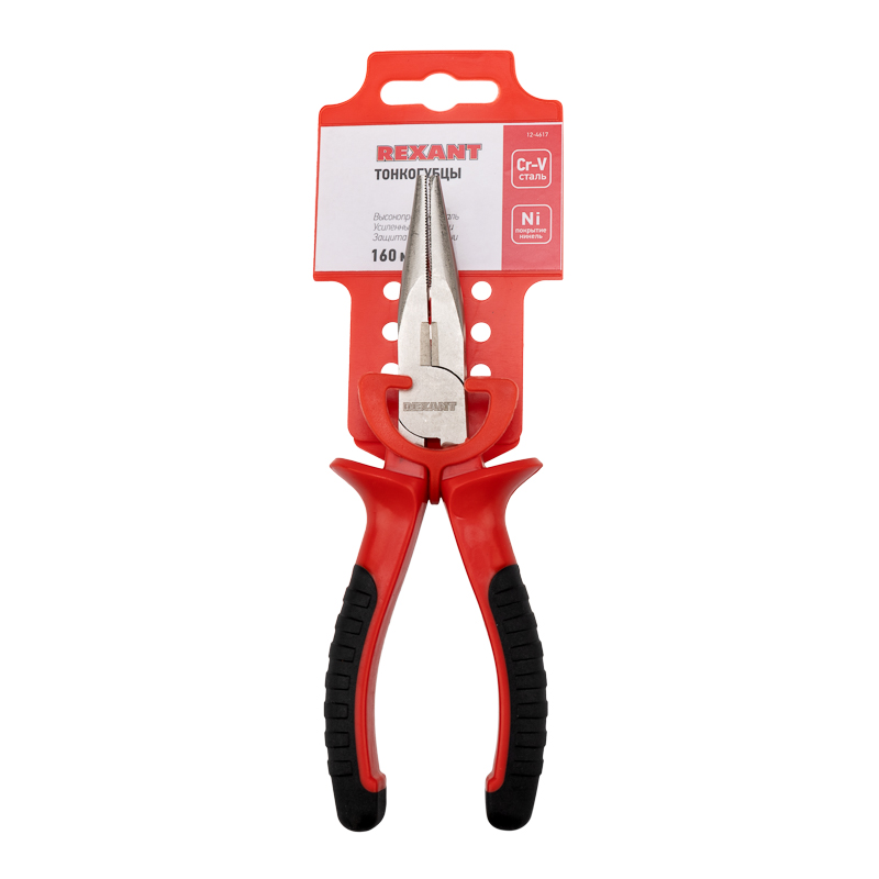 Тонкогубцы 160мм никелированные, двухкомпонентные рукоятки REXANT