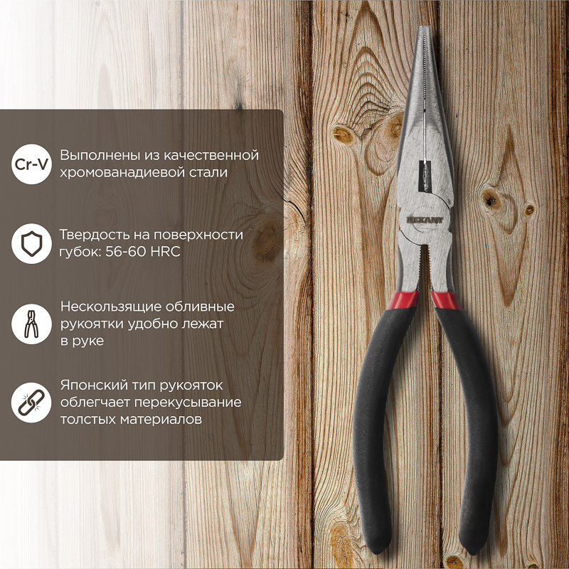 Высокое качество хромованадиевой стали, из которой изготовлены тонкогубцы, сохраняет их в рабочем состоянии долгие годы.